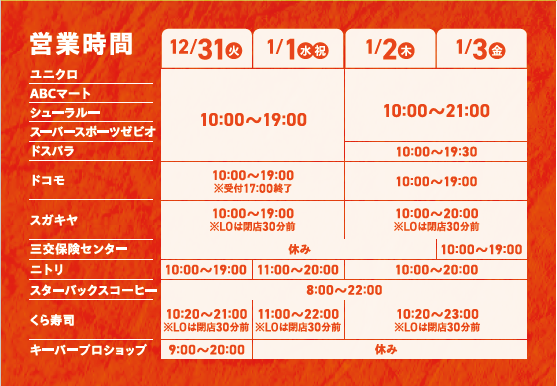 台風10号の接近に伴い、一部店舗の営業時間を変更させていただく場合がございます。