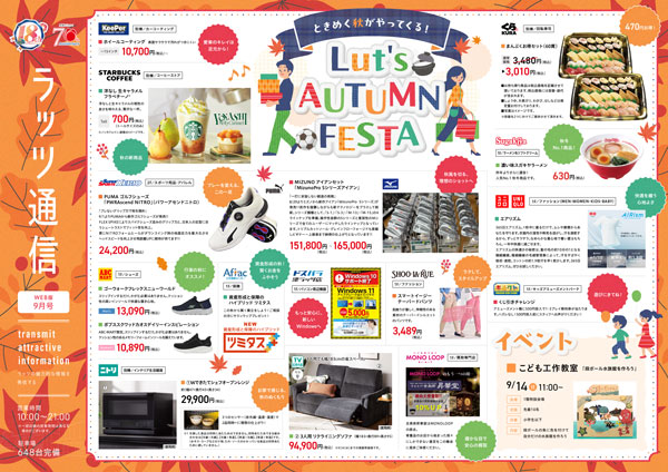 各ショップでは、この秋おすすめの商品やセール企画をご用意して、皆様のご来店をお待ちしております。