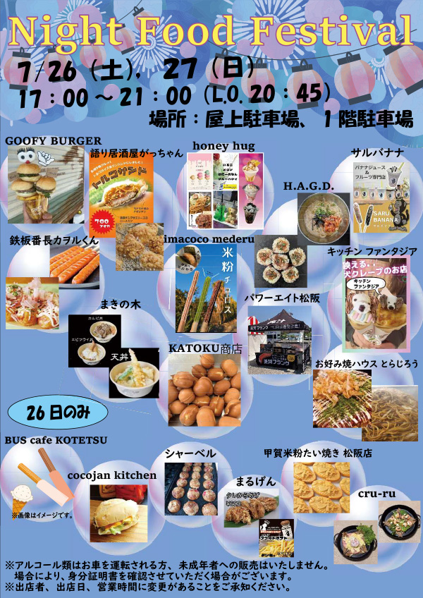 2025年7月26日(土)・27日(日) 17時~21時(L.O.20:45)