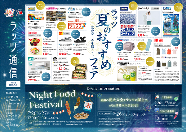 また、抽選で豪華賞品が当たるアニバーサリーキャンペーンも実施致しますので、ぜひ津ラッツまでお越しください。