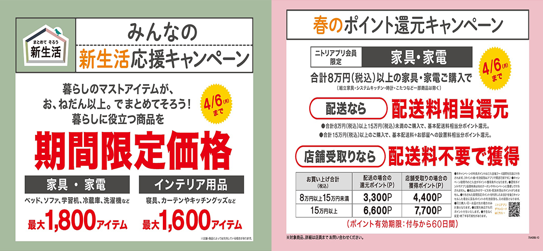 ニトリ みんなの新生活応援キャンペーン開催!