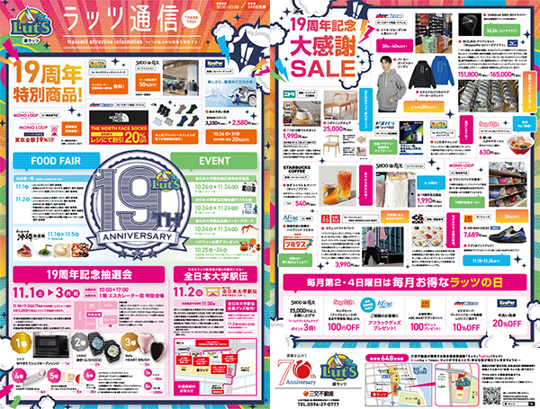 また、抽選で豪華賞品が当たるアニバーサリーキャンペーンも実施致しますので、ぜひ津ラッツまでお越しください。