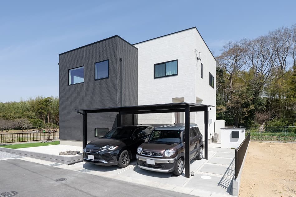 白と黒のコントラストが美しい、モダンで洗練された印象を放つF様邸。