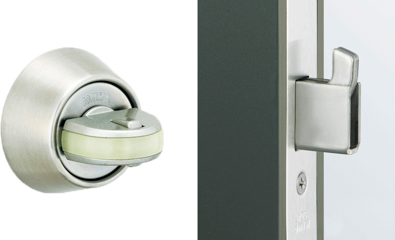 参考写真玄関ドアのサムターン回しによる不正解錠防止効果のある防犯サムターンを、ダブルロックの2ヶ所に採用。さらに、バールなどによるこじ開けを防ぐ、鎌デッド錠を設置しています。