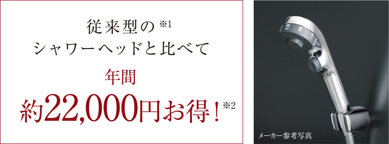 ※1「従来型」とは社団法人日本バルブ工業会で定義する「流量10L/分」のシャワーヘッドを指します。