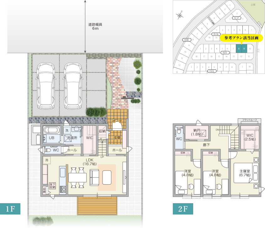 ※上記プランは、光の街 建築条件付土地 1515-8号地、1515-9号地の参考プランです。