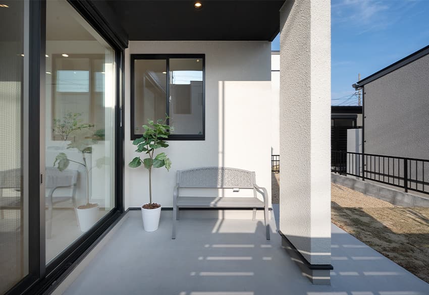 趣味や食事なども楽しめる、リビングと一体感のあるアウトドアスペース。
