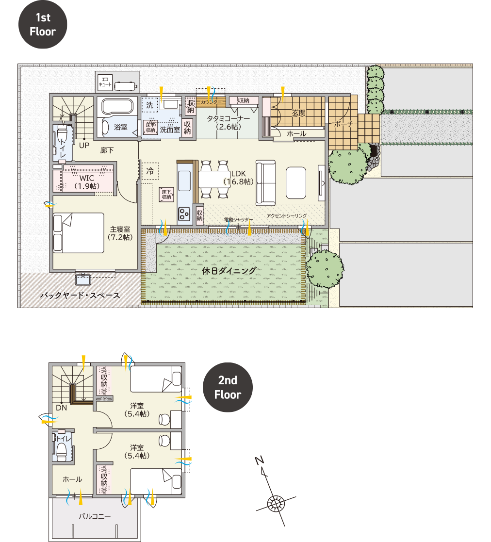 1階主寝室で平屋のように暮らせる南面ワイドプラン