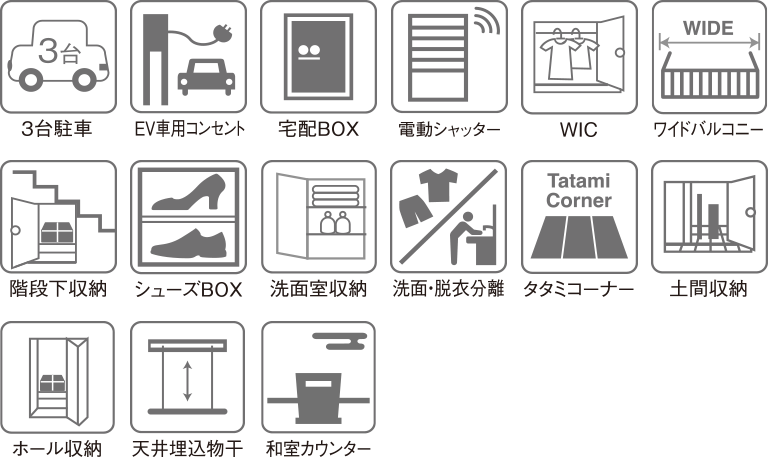 | 土地面積/209.35㎡(63.32坪) 有効面積/185.39㎡(56.08坪) 延床面積/104.65㎡(31.65坪) |
