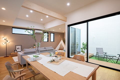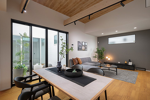 中庭でつながる、豊かな平屋