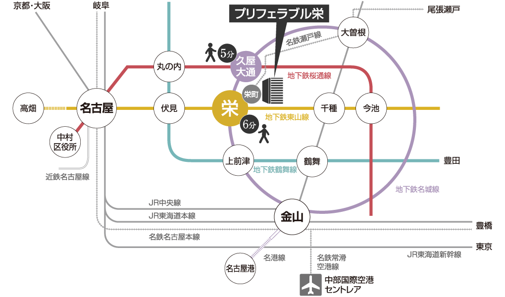 ※掲載の所要時間は待ち時間・乗り換え時間を含んだ通勤時(18:00~19:00到着)の最長時間を表したもので、 時間帯により異なります。 ※徒歩分数は80mを1分、車の所要時間は法定速度を遵守して算出(端数切り上げ)した概算時間です。 ※時間帯・交通事情により変わる場合があります。