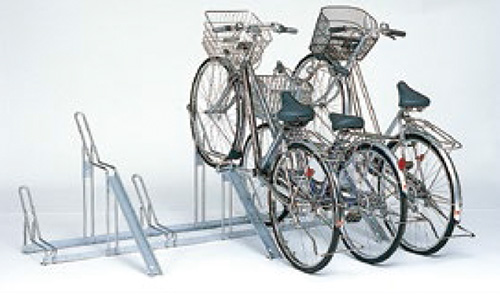 高低ラック付きの自転車置き場。ロックがかけやすく、周りの自転車が倒れないので安心です。